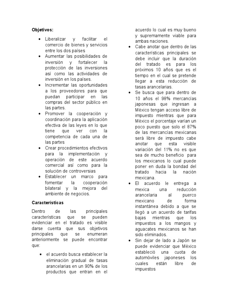 Tlc México-Japón Objetivos - Japón busca una alternativa de "primer ataque" al sistema ... - Es necesario aclarar que empiezo el subtítulo con una pregunta, con el objetivo de analizar si en verdad el tlcan ha fracasado en toda la extensión de la palabra o si es más bien cuestión de percepciones, por lo que ante la total apertura.